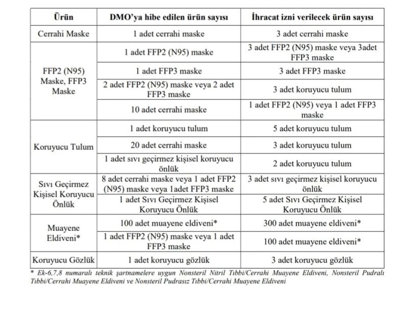 Gaziantep Sanayi Odası (GSO) Yönetim Kurulu Başkanı Adnan Ünverdi, maske ve tulum üreticisi firmaların talepleri doğrultusunda, ihracat şartlarının kolaylaştırılması için Hazine ve Maliye Bakanlığı ile Ticaret Bakanlığı’na ilettikleri rapor ve başvuruların olumlu sonuç verdiğini belirterek, Devlet Malzeme Ofisi (DMO) tarafından koruyucu donanım ürünlerinin teslim edilen ürün sayısına göre ihracat izni verilecek ürün sayılarında iyileştirme yapıldığını kaydetti.