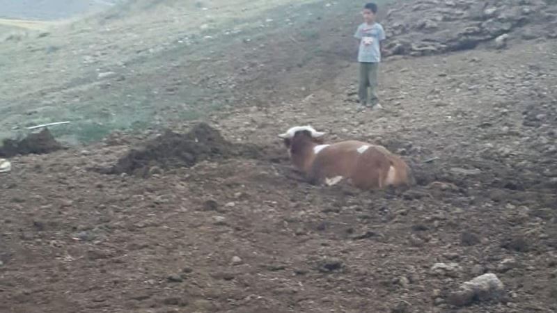 Kırıkkale’nin Yahşihan ilçesinde sürüden ayrılan kurbanlık tosun, mandıra yakınındaki gübre yığınına saplandı. Besicilik yapan Baki Doğan, hayvanı çıkartamayınca itfaiye ekiplerinden yardım istedi. Olay yerine gelen itfaiye ekipleri, çaresizce bekleyen tosunu halat yardımıyla kurtardı. Doğan, ekiplere teşekkür etti.