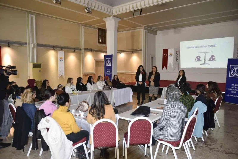 Adana Büyükşehir Belediyesi Sosyologu Elif Uras tarafından da ’Toplumsal Cinsiyet Eşitliği ve Kadına Yönelik Şiddet Eğitimi’ verildi. Eğitimde, toplumsal cinsiyet, toplumsal cinsiyet rolleri, toplumsal cinsiyete dayalı şiddet, kadına yönelik şiddet, şiddetin türleri, şiddetin etkileri ve başvuru mekanizmalarıyla ilgili bilgilendirme yapıldı. Düzenlenen eğitimler sonunda Adana Büyükşehir Belediyesi Kadın ve Aile Hizmetleri Dairesi Başkanı Ayten Dolançay, TMMOB Makina Mühendisleri Odası Adana Şube Başkanı Ümit Galip Uncu konuşmalarını yaparak eğitime katılanlara sertifikalarını verdi.
