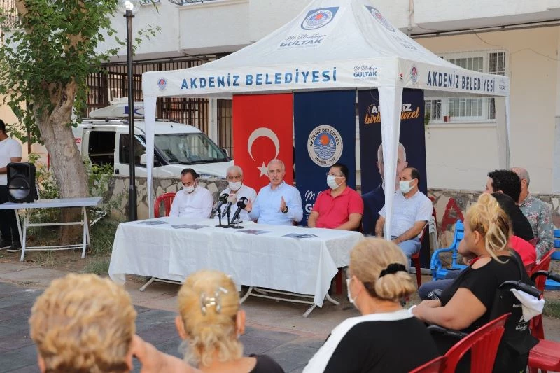Gültak, haftalık mahalle ziyaretleri kapsamında Hamidiye Mahallesi’nde vatandaşlarla bir araya geldi. Akdeniz’de birçok parkta yenileme işlemi yapacaklarını söyleyerek konuşmasına başlayan Gültak, "Yakında ihaleye çıkılacak. Sonrasında bu parkların hepsinin birden değiştiğini göreceksiniz. Biraz sabır diyorum" şeklinde konuştu.