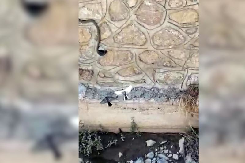Merkeze bağlı Yeniköy köyünde akkuyruk sallayan kuşunun dere ıslahı duvarının içindeki yuvasına girmek isteyen yılanla mücadelesi vatandaşlar tarafından cep telefonuyla görüntülenirken, bu görüntüler izleyenlerin yüreğini burktu.