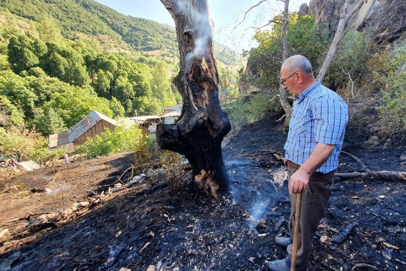 Gümüşhane’nin merkeze bağlı Yeşildere köyünde kuru otlar tutuşunca çok sayıda bahçe küle döndü. Evlere sıçraması son anda engellenen yangında çok sayıda ağaç da yandı.