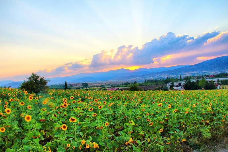 Kahramanmaraş’ta gün batımı saatinde günebakan çiçeği kartpostallık görüntüler oluşturdu.