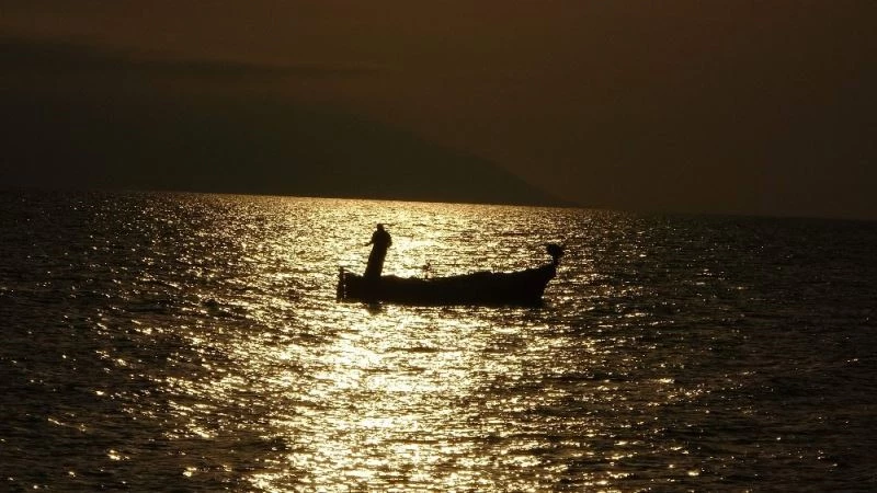 Gün batımında balıkçıların görüntüsü objektiflere böyle yansıdı