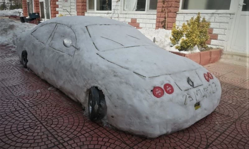 Elazığlı bir vatandaş, yoğun kar yağışının ardından 5 saatlik bir çalışma sonucu yaptığı kardan yaptığı arabasına 200 bin lira değer biçti.