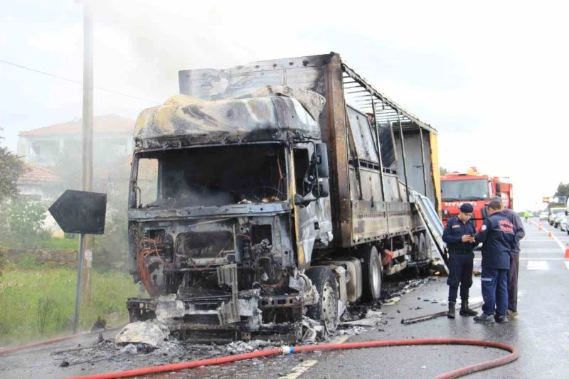 Yangının bir anda başladığını belirten tır sürücüsü Sinan A., “Yolda giderken aniden yağ ikaz lambası yandı. Sağa çektim. Araç yanmaya başladı. Mersin’den yola çıkmıştım. TÜVTÜRK istasyonlarına bu güneş panellerini bıraka bıraka gidiyordum” diye konuştu.
