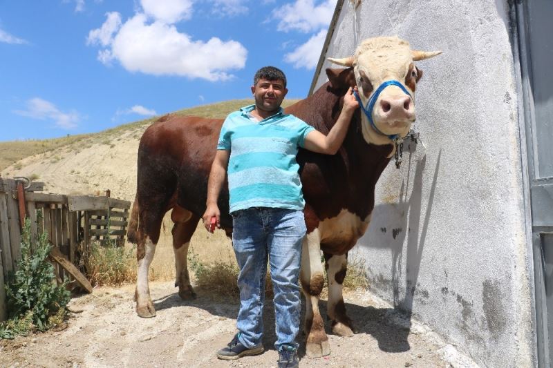 Sivas’ta yetiştirilen ‘Simental’ cinsi 1 tonluk boğa, dev cüssesi ile görenleri hayrete düşürüyor.