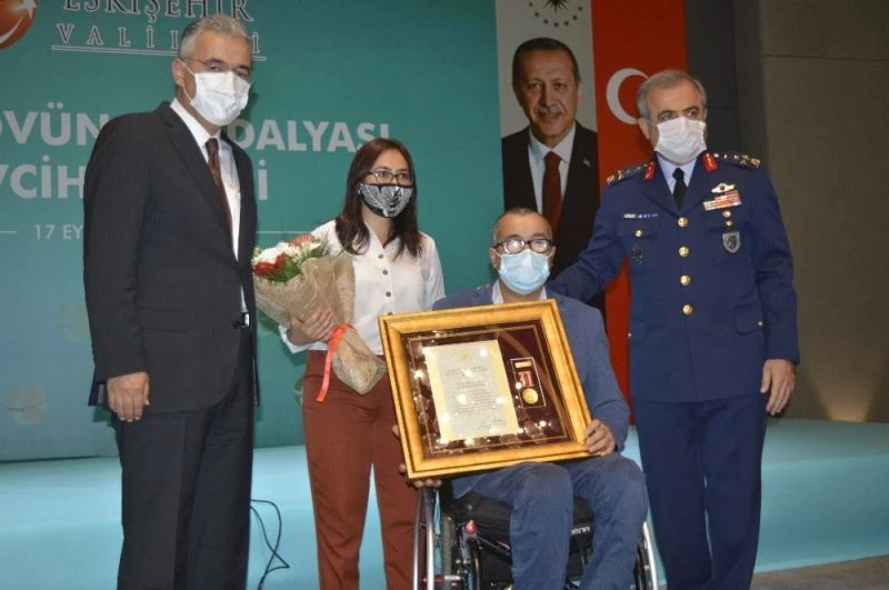 Eskişehir’de, terörle mücadelede şehadete erişen şehitlerin aileleri ile gazilere Cumhurbaşkanlığı tarafından tevcih edilen Devlet Övünç Madalyası ve Beratı, düzenlenen törenle takdim edildi.