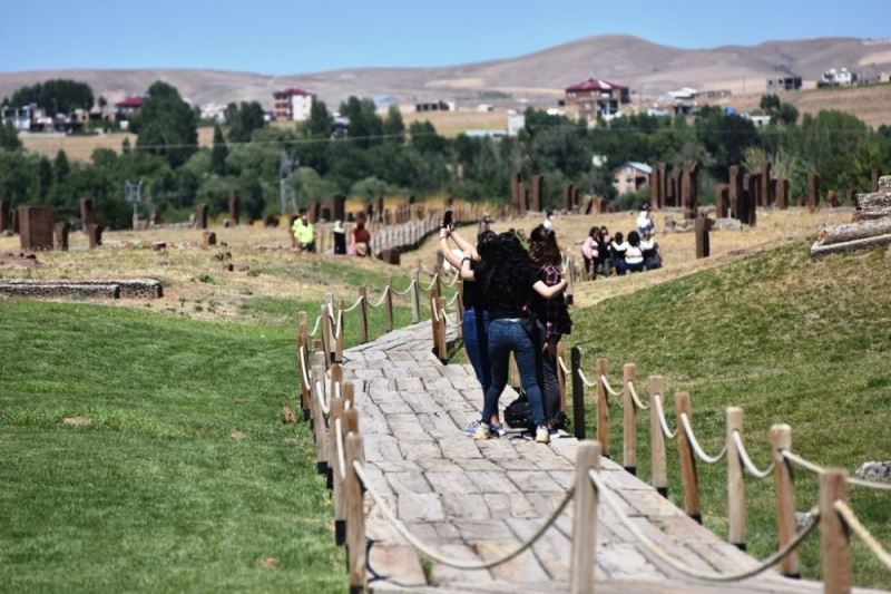 Anadolu’nun Orhun Abideleri olarak da bilinen ve dünyanın en büyük Türk-İslam Mezarlığı olan Ahlat Selçuklu Meydan Mezarlığı’nı ziyaret eden güvenlik güçleri ilk defa gördükleri abidevi mezar taşları karşısında hayranlıklarını gizleyemedi. 210 dönümlük alan üzerinde kurulu bulunan ve boyları 4,5 metreye kadar varan, üzerindeki yazı ve şekillerle her biri bir sanat eseri niteliği taşıyan mezar taşlarını inceleyen güvenlik güçleri ziyaretleri anısına fotoğraflar çekmeyi de ihmal etmediler.