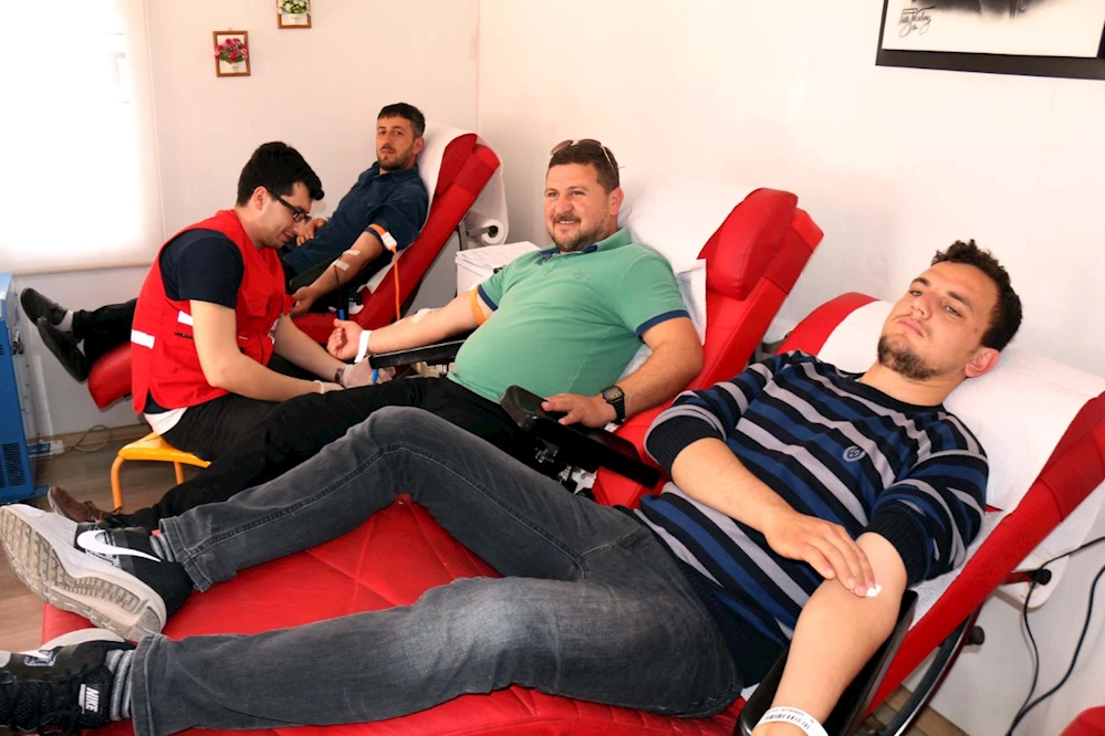Suriye`nin Afrin bölgesinde, Türk Silahlı Kuvvetleri tarafından teröristlere yönelik sürdürülen Zeytin Dalı Harekâtı sırasında ortaya çıkabilecek kan ihtiyacı için, Osmaniye`de güvenlik korucuları kan verdi. Cumhuriyet Meydanı`ndaki Kızılay Evine gelen 100`e yakın güvenlik korucusu, kan bağışında bulundular. Osmaniye Güvenlik Korucuları Şehit ve Gazi Aileleri Derneği Başkanı Mustafa Delikişi, il genelindeki güvenlik korucularının kan bağışı kampanyasına destek olmak için bir araya geldiğini belirterek, "Afrin`de savaşan güvenlik güçlerimize bizde buradan bir nebzede olsa, küçük bir katkı sağlamak için buradayız. Bu kan yarın bir gün herkese lazım olabilir. Türk Kızılayının bu özverili çalışmasına bizde kan vererek destek oluyoruz. Ayrıca bu kampanyaya destek olmamızın bir diğeri de empati yapmaktır. Düşünün başka bir ülkenin vatandaşının kanını mı tercih edersiniz, yoksa bir türkün mü kanını tercih edersiniz. Şahsen benim vücudum bunu kabul etmez, biz Türk`ün Türk Kızılayının kanına her zaman ihtiyaç duyabilir. Bugün bu olaya sessiz kalmamak için buradayız, ve kan bağışı kampanyasına destek oluyoruz." dedi. Türk Kızılayı Osmaniye Şube Başkanı İsmet İpek ise bu anlamlı bağılarından dolayı tüm güvenlik korucularına teşekkür ederek, "Kan bağışı kampanyalarının en anlamlısı herhalde bugün yapılıyor. Güvenlik korucularımız, öncelikle Afrin`de mücadele eden kahraman arkadaşlarını, Mehmetçikleri düşünmüşler ve sonrada ihtiyaç sahibi vatandaşları düşünüp kampanyaya bağışta bulunarak destek oldular. Türkiye`de Türk Kızılayı`nın kan bağışı kampanyalarının böylesine farkındalıklarla devam etmesi, yapılması bizim içinde sevinç ve gurur vericidir. Güvenlik Korucularımızı bu anlamlı desteklerinden dolayı kutluyor, teşekkürlerimi sunuyorum. Bugün bütün korucular derneği üyeleri Kızılay`a can verecekler, Mehmetçiğe de tekrar tekrar destek çıkmış olacaklar inşallah." diye konuştu. Güvenlik Korucuları, bağışın ardından bir araya gelip hilal oluşturdular.