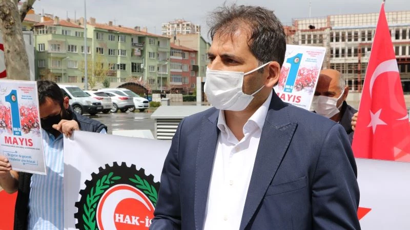 30 Nisan Cuma günü valilik izni doğrultusunda salgın nedeniyle az sayıda kişiyle Niğde Ömer Halisdemir Meydanındaki basın açıklaması HAK-iŞ Niğde İl Başkanı Gökhan Demircioğlu tarafından yapıldı.