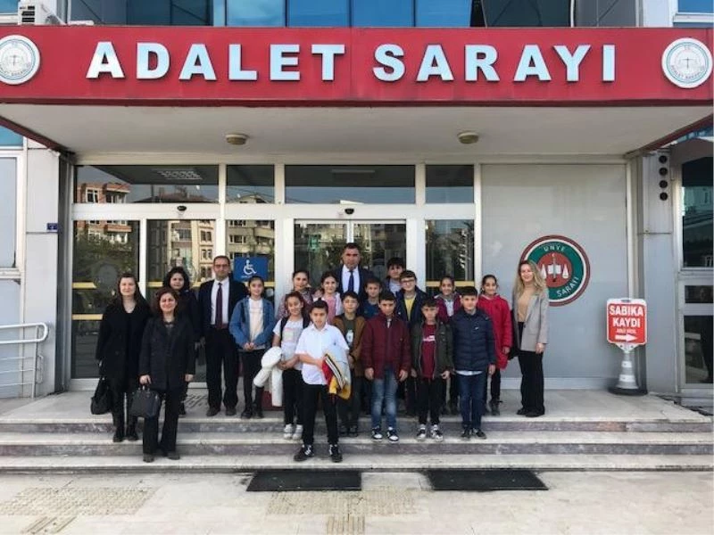 Ordu Büyükşehir Belediyesi’nin Ünye ilçesinde bulunan Yunus Emre Bilgi Evi’nin düzenlediği meslek tanıtımı programı kapsamında da öğrenciler, Ünye Adalet Sarayı’nı ziyaret etti. Başsavcı Hayri Ormancı ve Ağır Ceza Mahkemesi Başkanı Refik Ay tarafından karşılanan öğrenciler hem meslek hem de adalet, kanun, hukuk kavramlarıyla ilgili bilgilendirildi. Mahkeme salonunda ise kendileri için yapılan temsili duruşmaya katılan öğrenciler hâkim ve savcı olma isteklerini kısa süreliğine de olsa gerçekleştirmiş oldu. Bu sayede öğrenciler hakim ve savcı olma isteklerini kısa süreliğine de olsa gerçekleştirmiş oldu.