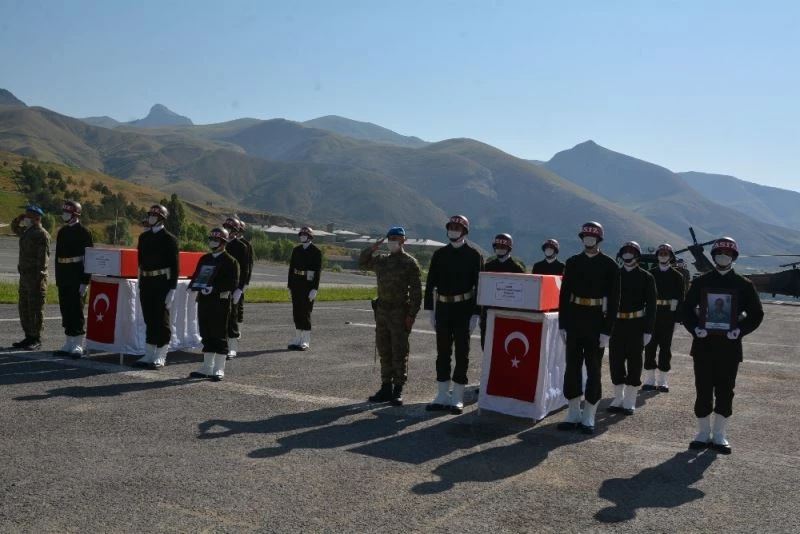 Saygı duruşu ve şehitlerin özgeçmişlerinin okunmasının ardından Hakkari Müftü Vekili Osman Doğan tarafından dualar okunarak, şehitlerin naaşları memleketlerine uğurlandı.