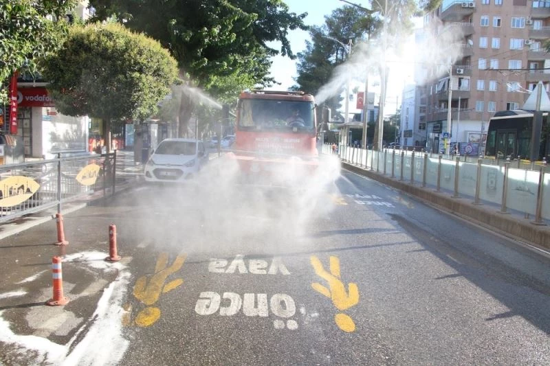 Haliliye Belediyesi, Kurban Bayramı’nda ilçe genelinde cadde ve sokakları köpüklü su ile yıkayarak, dezenfekte aracı ile gül suyu serpti.