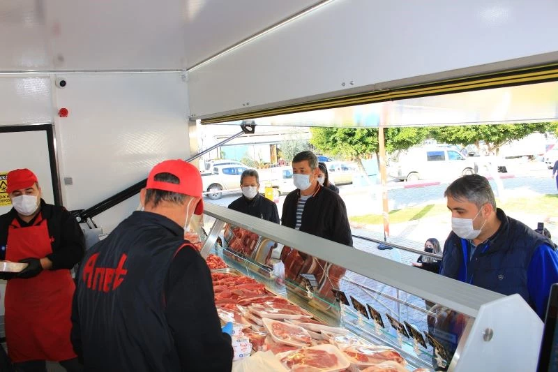 Antalya Büyükşehir Belediyesi Halk Et Mobil Satış Mağazası, Cumartesi günü için alınan kısıtlama kararı nedeniyle Finike’de Cumartesi yerine iki haftada bir Salı günü hizmet verecek.