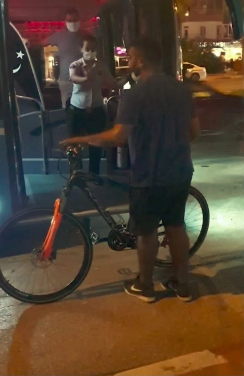 Antalya’da bisikletiyle birlikte halk otobüsüne binmek isteyen genç, içeri alınmayınca şoför ile tartışmaya başladı. Şoförle uzun süre münakaşaya girip otobüsten inmek istemeyen genç, kadın özel güvenlik görevlisinin ikazı sonucu otobüsten inmeye ikna oldu.