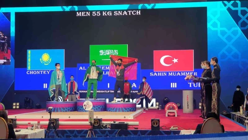 Özbekistan’ın başkenti Taşkent’te 17 Aralık 2021 tarihlerine kadar devam edecek Halter Dünya Şampiyonası’nın ilk gününde podyuma çıkan 55 kiloda Muammer Şahin, bronz madalyanın sahibi oldu.