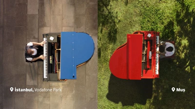 5G’nin sunduğu eşzamanlı bağlantı teknolojisi sayesinde Haluk Levent Vodafone Park’tan, Bager Çalışcı ise Muş’tan piyanoda ‘Elfida’ adlı parçayı çaldı. Levent ve Çalışcı, bin 400 kilometre uzaklıktan karşılıklı olarak piyanolarının tuşlarına bastı.