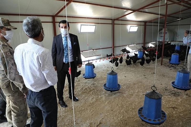 Kaymakam Öztürk GAP İdaresi ile ortaklaşa yürüttükleri Gezgin Tavukçuluk Projesi kapsamında ilçeye bağlı İncirli köyünde 2 ve Üçyol köyünde 1 olmak üzere toplamda 3 tesis yaptıklarını söyledi. Kaymakam Öztürk, "Her tesiste 500 adet toplamda bin 500 adet Atak - S ırkı yumurtacı tavuk ile ilçemizde mevcut tarımsal üretime yumurta üretimini de eklemiş oluyoruz. Amacımız 3 tesiste günlük en az bin yumurta elde etmek. Tesislerimizin hayırlı ve bereketli olmasını temenni ediyorum" dedi.