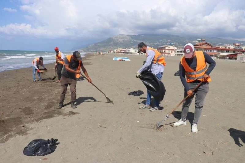 HATAY - Hatay'ın Samandağ ilçesi sahillerinde, Suriye kaynaklı petrol sızıntısının neden olduğu kirliliğe yönelik başlatılan temizlik çalışmaları devam ediyor.