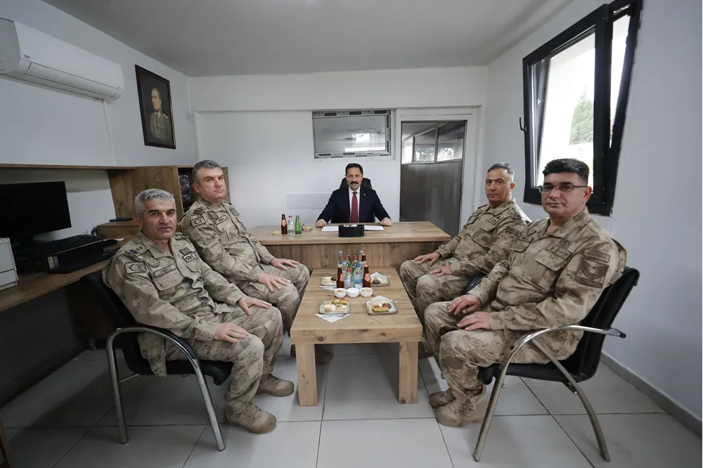Ziyarette güvenlik güçleriyle bayramlaşan Masatlı, kontrol noktasından geçen sürücü ve yolcuların da Ramazan Bayramı'nı tebrik etti.