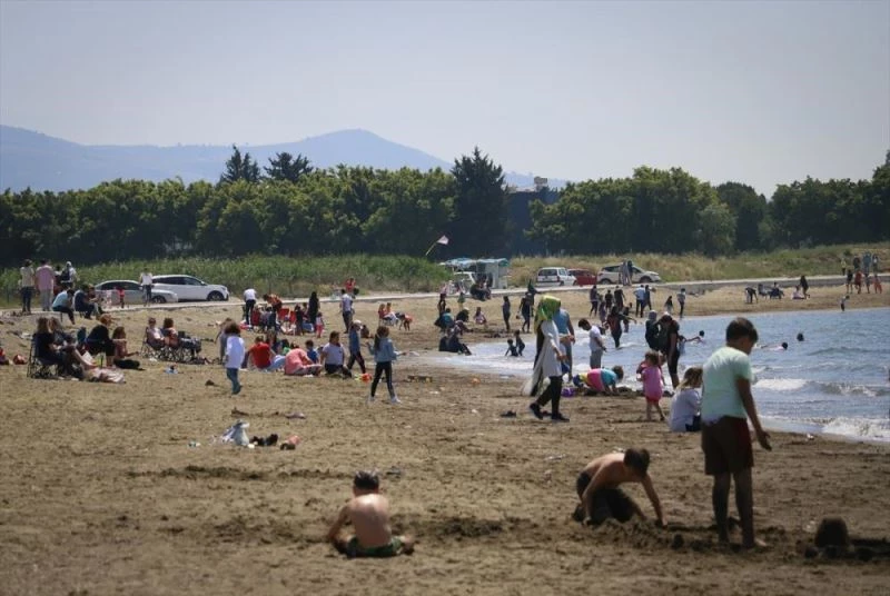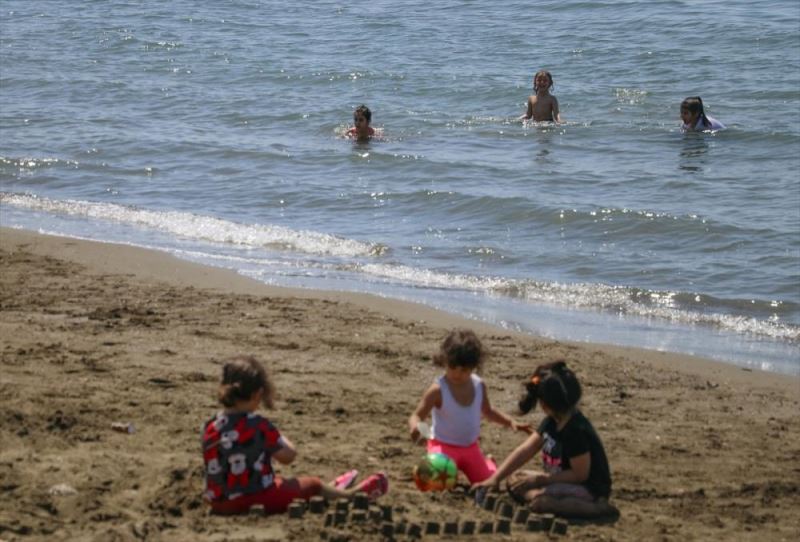 Plaj ve kumsallarda yogunlugun yasandigi turizm ilçelerinde çocuklar, sicak ve güzel havayi firsat bilerek denize girip, eglendi.