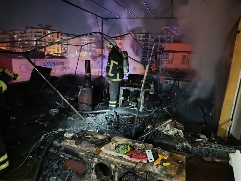 Hatay'da 2 katlı binanın damında çıkan yangın söndürüldü