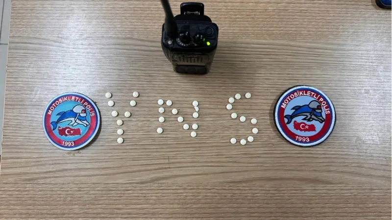 Araçtaki incelemede 33 uyuşturucu hap bulan ekipler, sürücü Y.H. ve yanındaki U.B'yi gözaltına alındı.