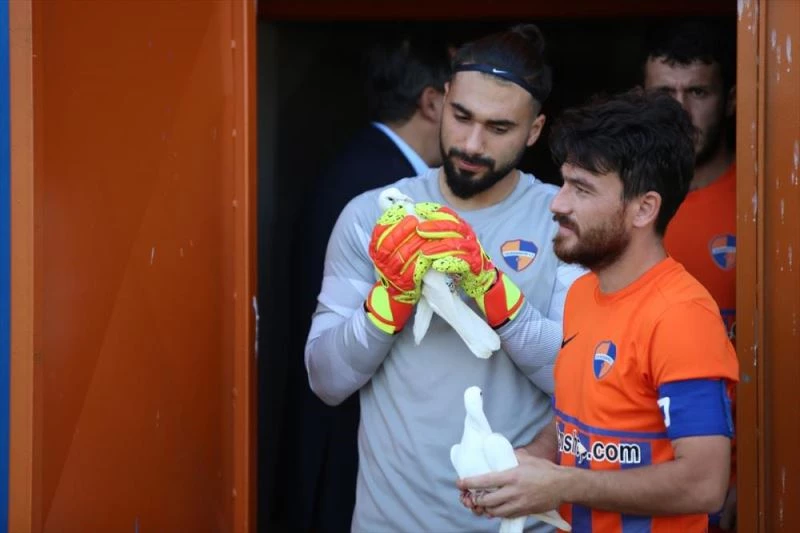 İskenderun 5 Temmuz Stadı'ndaki 16. hafta karşılaşması öncesi futbolcular, ellerinde beyaz güvercinle sahaya çıktı.