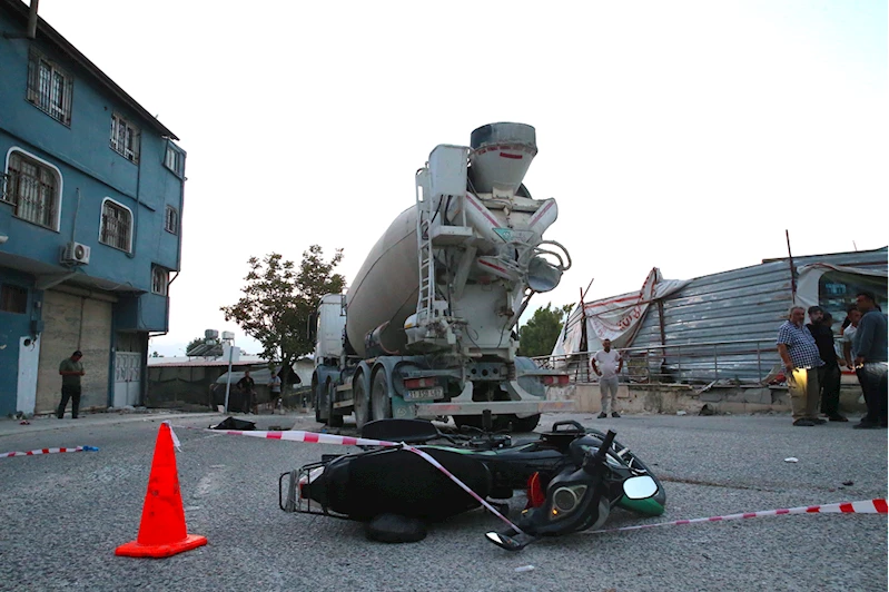HATAY - Hatay'ın merkez Antakya ilçesinde beton mikseriyle çarpışan motosikletteki 1 kişi öldü, 1 kişi yaralandı.