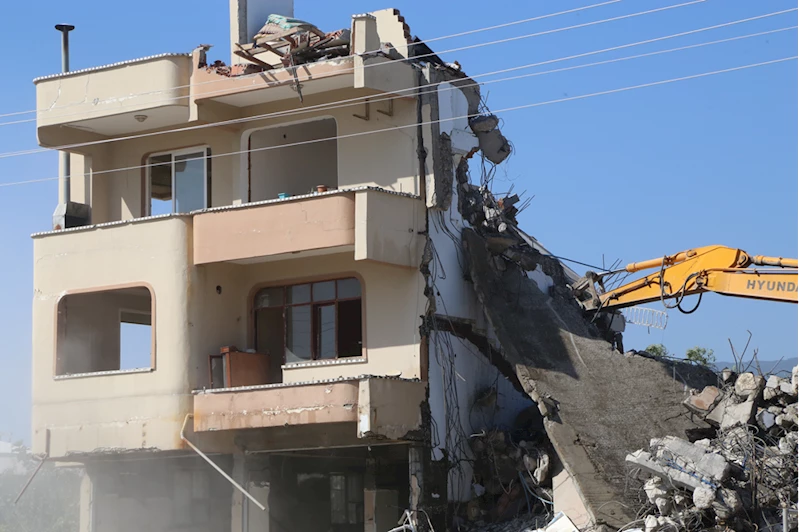 İskenderun ilçesinde, 6 Şubat'taki afetin ardından yıkım kararı verilen yapılarda çalışmalar devam etti.