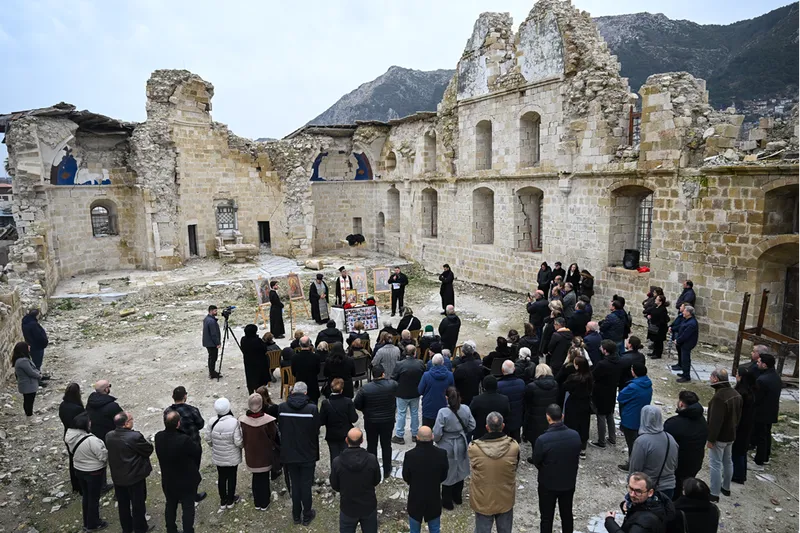 Hatay'da depremlerde hayatını kaybedenler için bir kısmı yıkılan kilisede ayin yapıldı