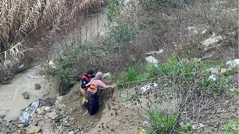 Hatay'da dereye düşen oğlağı çıkarırken mahsur kalan kişi kurtarıldı