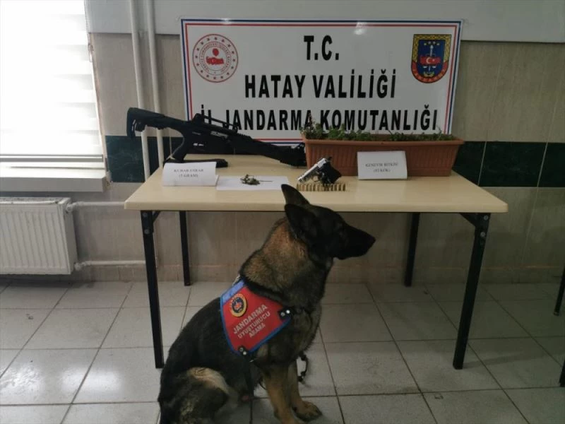 Narkotik dedektör köpeği "Öğle"nin de katılımıyla yapılan aramada, evin balkonundaki saksılarda 82 kök Hint keneviri ile ikametin çeşitli yerlerinde 5 gram kubar esrar, ruhsatsız tabanca, ruhsatsız otomatik av tüfeği ve 14 fişek ele geçirdi.