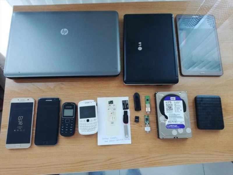 Adreslerde, çok sayida telefon, bilgisayar, flas ve harici bellek ele geçirildi.