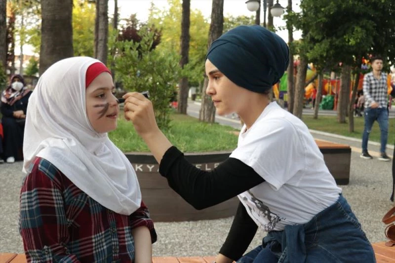 Gönüllü palyaçoluk yapan Melisa Bayram ve üç arkadasi, kendi imkanlariyla aldiklari boyama malzemeleri ve balonlarla, kentteki çocuklarin yüzünü güldürüyor.