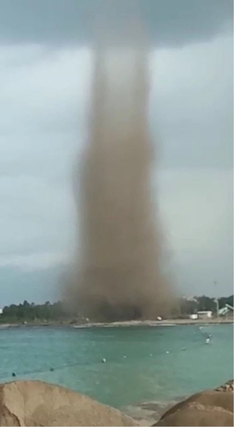 Sabah saatlerinde kıyıya yakın yerde oluşan hortum yaklaşık 15 dakika sürdü. Kıyıda kum ve denizden su çeken hortum cep telefonu kamerasıyla görüntülendi.