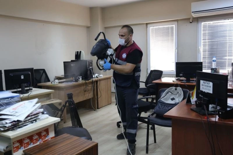 Hatay Büyükşehir Belediyesi ekipleri il genelinde vatandaşların yoğun bir şekilde kullandığı resmi kurum ve kuruluşların binasında dezenfekte çalışmaları gerçekleştiriyor.