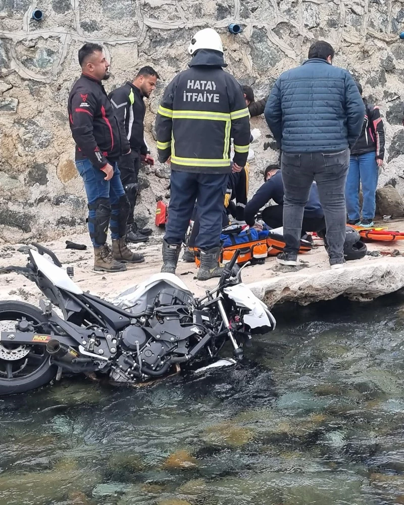 Selim Fırıncıoğulları'nın (24) kullandığı plakası henüz öğrenilemeyen motosiklet, Samandağ-Arsuz sahil yolunda yaklaşık 15 metrelik uçuruma yuvarlandı.