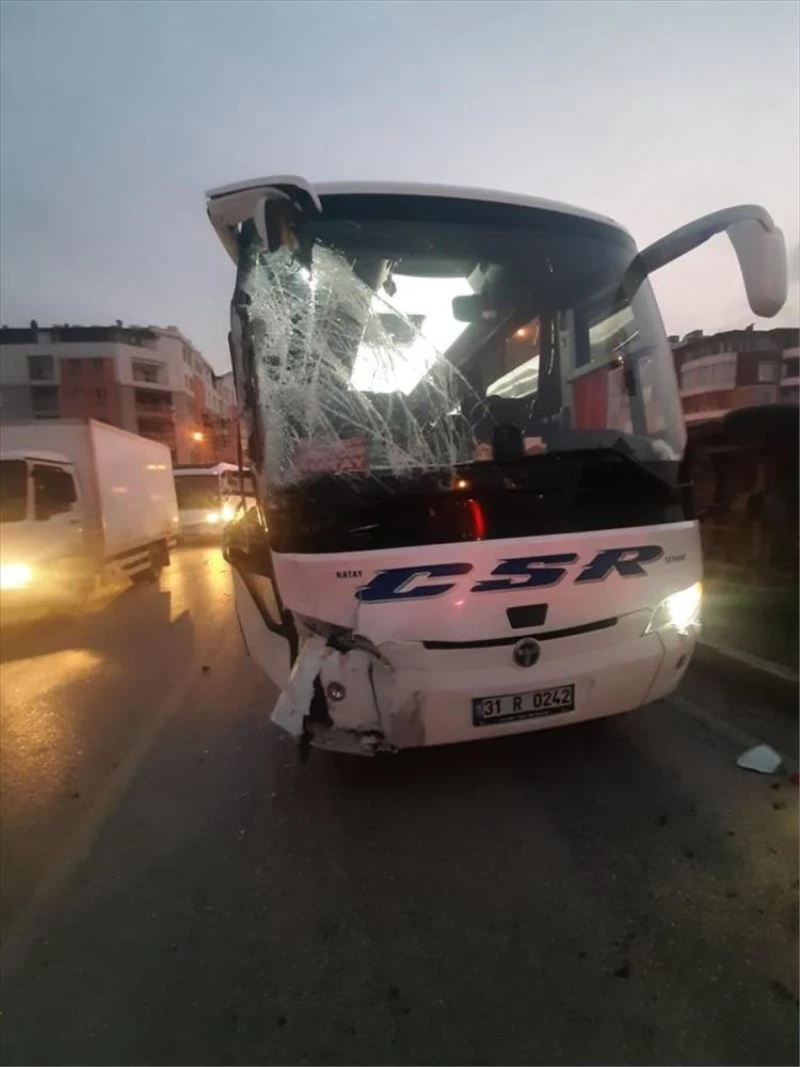 Sürücüsünün kimliği henüz öğrenilemeyen 31 R 0242 plakalı yolcu otobüsü, Antakya-İskenderun yolu Ekinci Kavşağı'nda dönmeye çalışan 31 S 0090 plakalı öğrenci servisine arkadan çarptı.