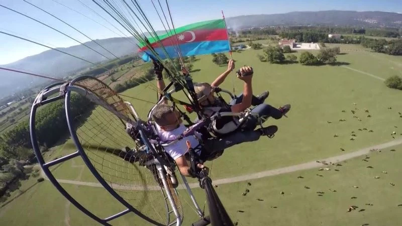 Paramotor pilotu Özcan Bulut ise, “Düzce’den Azeri kardeşlerimize selam olsun Bu süreçte biz havacılar da gökyüzünde iki tane bayrak havalandıralım istedik. Bu da güzel bir görüntü oldu. Bunun heyecanını yaşıyoruz” dedi.