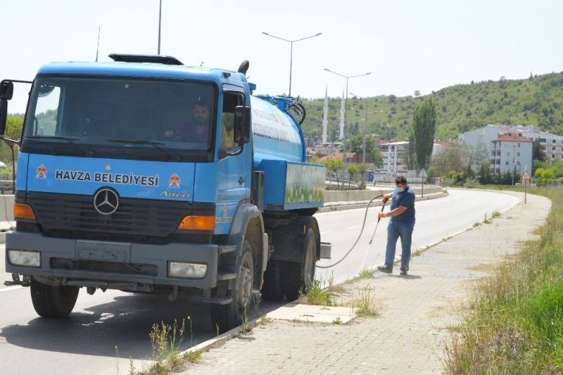İçişleri Bakanlığınca yayımlanan genelge kapsamında aralarında Samsun’un da bulunduğu 14 büyükşehir ile Zonguldak’ta 4 günlük sokağa çıkma kısıtlamasının ikinci gününde Havza’da cadde ve sokaklar boş kalırken, Havza Belediyesi çalışmalarına ara vermeden devam etti. Çalışmalar kapsamında Zabıta Müdürlüğü ekipleri tarafından Kevser Camii önü ve Mehmetçik Meydanı’nda genelge gereği 12.00- 18.00 saatleri arasında sokağa çıkan 65 yaş ve üstü vatandaşların sosyal mesafeye uymaları, park ve banklarda oturmamaları konusunda sık sık uyarılarda bulunuldu. Ayrıca zabıta ekipleri tarafından sokağa çıkma kısıtlamalarına uymayan bir manava cezai işlem uygulandı. Temizlik İşleri Müdürlüğü tarafından sokakların boş kalması üzerine İmaret, Yeni Mescit ve İnönü mahallelerinde ot ilaçlaması yapıldı.