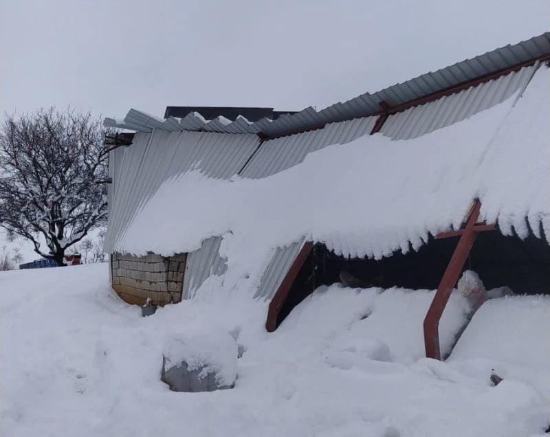 Adıyaman’ın Tut ilçesinde karın ağırlığına dayanamayan çiftliğin çatısı çöktü, 6 büyükbaş hayvan yaralandı.