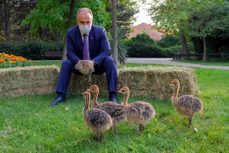 Büyükşehir Belediye Başkanı Alinur Aktaş, Bursa Hayvanat Bahçesi’nin farklı türlerde hayvanları bünyesinde barındıran keyifle gezilebilecek yerlerden olduğunu söyledi. Tüm vatandaşların gönül rahatlığıyla gezebileceği alanlardan oluştuğunu belirten Başkan Aktaş, “Hayvanat Bahçesi ailesine yeni katılan 5 deve kuşu yavrumuzu ziyaret ettik. Yavrular, deve kuşlarının kendilerinin yaptığı yuvada doğal yollarla dünyaya gözlerini açtılar. Yaklaşık bir aydır anne babalarından ve Afrika Savana’daki diğer hayvanlardan ayrı tutulan yavrular özel yemlerle besleniyor. Bakıcılarının büyük bir özenle baktığı yavrular ileriki günlerde ziyaretçiler tarafından görülebilecek. Bursa Hayvanat Bahçesinde bulunan devekuşu ailesine katılan 5 yeni üye ile deve kuşu ailesinin nüfusu 12’e yükseldi. Tüm Bursalı hemşerilerimizi botanik park hüviyetindeki Hayvanat Bahçemizi gezmeye, görmeye ve çocuklarımızdaki hayvan sevgisi arttırmak amacıyla dünyanın dört bir tarafından getirilen hayvanları yerinde izlemeye davet ediyorum” dedi.