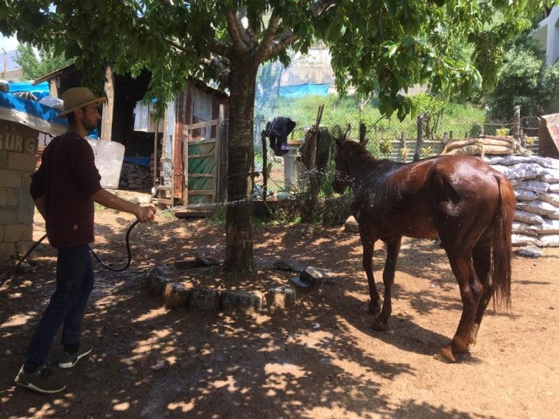 Beytüşşebap ilçesinde sıcaklar nedeniyle dışarıda kalan atların serinlemesi için vatandaşlar hortumlarla tazyikli su kullanarak hayvanlarını serinletiyor. Termometrelerin gün içinde 30 dereceye kadar çıktığı ilçede vatandaşlar hayvanlarını gün boyu iki defa serinletmeye çalışıyor. Başaran köyünde kalan Emrah Gökçe, atının sıcaklar nedeniyle evin bahçesinden ayrılmadığını söyledi. Gökçe, "Günlerdir çok sıcak bir hava var. Atımız dışarı bile çıkmıyor. Böyle iki defa serinletiyorum. Sonra dışarı bırakıyorum. Suyla yıkıyorum çok hoşuna gidiyor" dedi.
