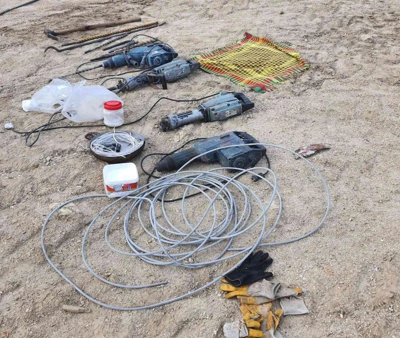 Muğla’nın Yatağan ilçesine bağlı Hacıveliler Mahallesi Gökbeldağı mevkiinde izinsiz kazı yapıldığı ihbarını alan jandarma ekipleri kaçak kazı yapan 2 kişiyi gözaltına aldı. Yapılan aramada 2 adet cep telefonu, 1 adet jeneratör, 4 adet hilti, 8 adet hiltiye takılan kırıcı demir uç, 1 adet demir kanca, 1 adet yaklaşık 10 metre uzunluğunda gri renkli elektrik kablosu, 1 adet yaklaşık 3-4 metre uzunluğunda kırmızı-beyaz renkli elektrik kablosu, 1 adet 3 metre uzunluğunda tahta merdiven, 1 adet kazma, 1 adet kürek, 1 adet patlayıcı maddede kullanmak için köpük, yaklaşık 4 kilogram şeker gübresi ve pudra şekeri ile elde edildiği değerlendirilen toz patlayıcı madde, 5 adet siyah renk boru ele geçirildi. Olayla ilgili A.D. ve İ.D. isimli şüpheliler gözaltına alınırken, haklarında adli işlem başlatıldı.