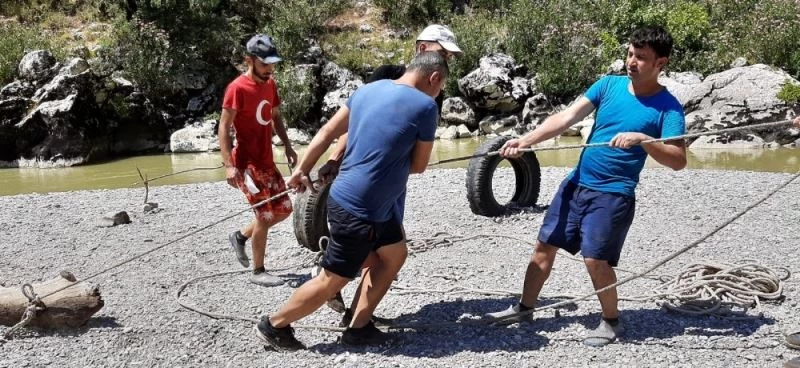 Sıcak havalarda kendi imkanları ile hazırladıkları parkurlarda yarışan gençler serin sularda hem yarışıp hem de eğleniyorlar.