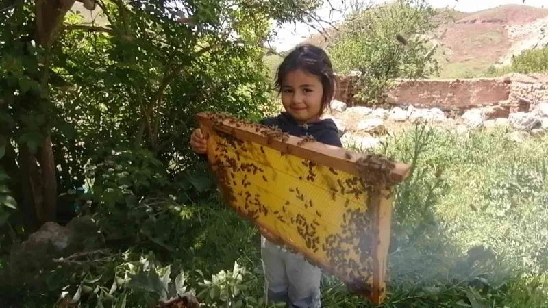 Çizgi film karakteri Heidi’ye taş çıkartan Sivaslı 5 yaşındaki Hira Nur Yıldırım, arıları çıplak elle avuçluyor, ata biniyor ve süt sağıyor.