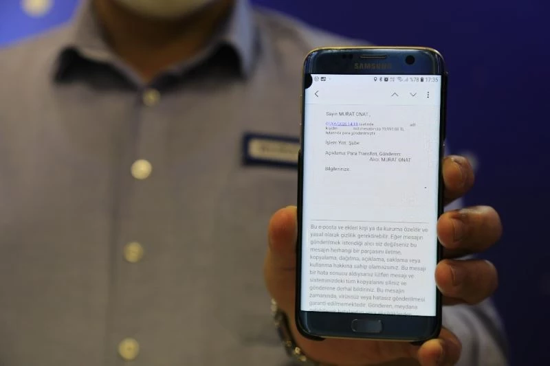 Olay, dün Elazığ’da yaşandı. çocuk babası olan ve 21 yıldır özel bir şirkette çalışan Murat Onat’ın hesabına yanlışlıkla 19 bin 950 lira transfer edildi. Ne olduğunu anlayamayan, herhangi bir yerden alacağı olmayan Onat, bankanın müşteri hizmetleriyle iletişime geçince paranın hesabına yanlışlıkla yatırıldığını öğrendi. Yanlışlıkla hesabına para transferi yapan şahsı da hiçbir şekilde tanımayan Onat, ilgili banka ile iletişime geçerek parayı iade edip örnek bir davranışa imza attı.
