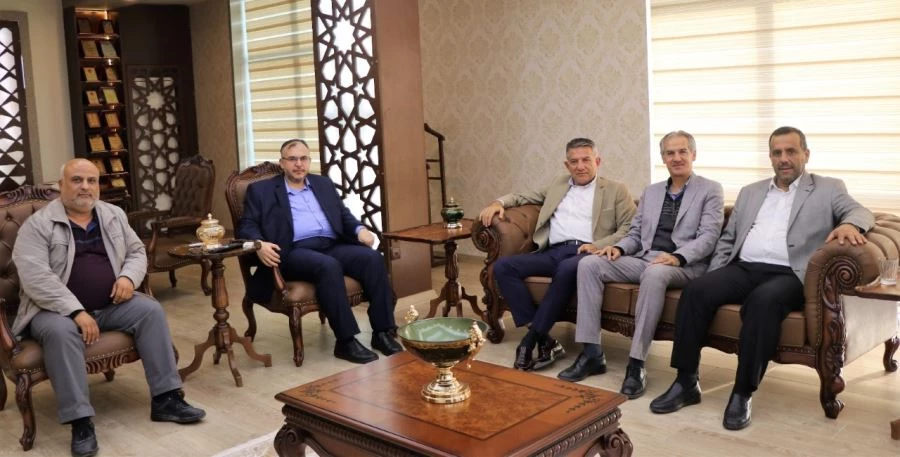 Sıcak ve samimi bir ortamda gerçekleşen ziyaret sonunda Çalışkan ve konukları hatıra fotoğrafı çektirdi.